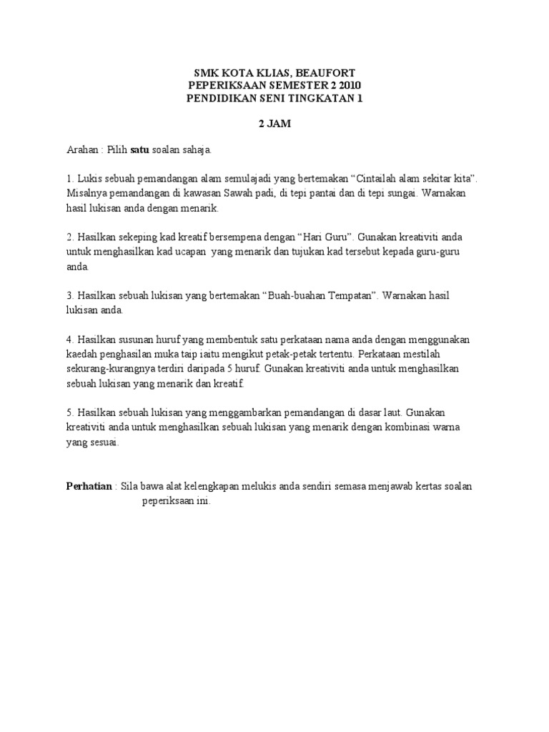 Soalan pertengahan tahun pendidikan seni visual tingkatan 2 adalah. JANGAN BUKA KERTAS SOALAN INI SEHINGGA DIBERITAHU Arahan 1. Koleksi Soalan Latihan Nota Modul Bahasa Melayu BM Tingkatan 2 Jawapan.